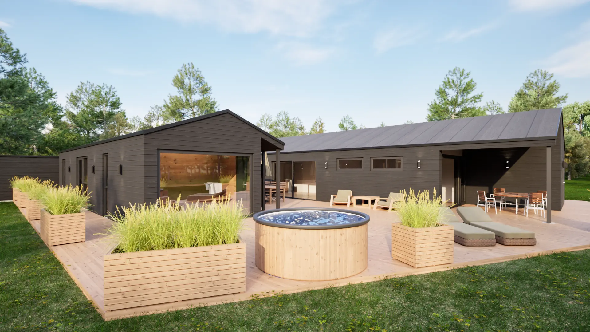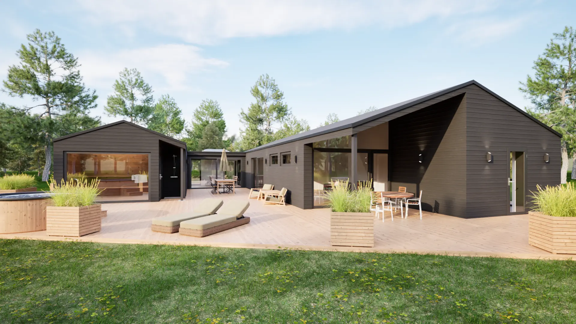 Projektet er et moderne sommerhus, hvor enkel nordisk æstetik og funktionelle løsninger går hånd i hånd. De mørke træfacader giver huset et markant og nutidigt udtryk, som samtidig harmonerer med den omgivende natur. Den rummelige træterrasse fungerer som husets naturlige samlingspunkt. Huset er udført efter nutidens standarder og med stor respekt for den enkle, skandinaviske byggestil.